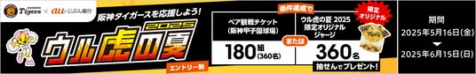 auじぶん銀行株式会社(本社:東京都中央区、代表取締役社長:田中 健二、以下 auじぶん銀行)は、2025年5月16日から「阪神タイガースを応援しよう!ウル虎の夏2025観戦チケット・オリジナルジャージプレゼントキャンペーン」を実施します。