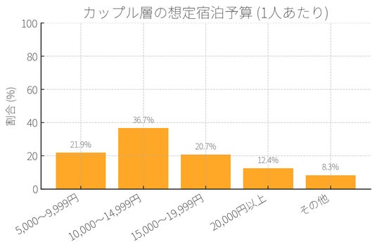 注目すべきは、カップル層の「15,000円以上」の価格帯を選ぶ割合(33.1%)が、全体平均と比べて高い傾向にあることです。これはカップル層が特別な体験に対してより多くの出費を惜しまない傾向を示しています。