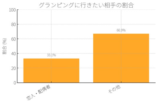 全国510人を対象にした調査で、「グランピングに行くとしたら、誰と行きたいですか?」という質問(Q2)に対し、「恋人・配偶者」と回答した人は全体の33.1%となりました。この結果は、多くの人が大切なパートナーとの特別な時間を過ごす場としてグランピングを選んでいることを示しています。