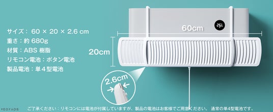 設置は驚くほど簡単。工具・テープ不要で、1秒でエアコンに装着完了。60~95cmの伸縮機能により、各社主要モデルにフィットします。