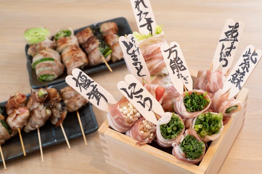 彩り豊かな人気串! レタス巻き・トマトチーズ・万能ねぎ巻きなどの 野菜巻き串