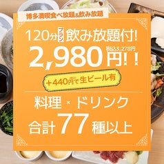 【83品120分食べ飲み放題】博多まるごと贅沢食べ飲み放題3,828円