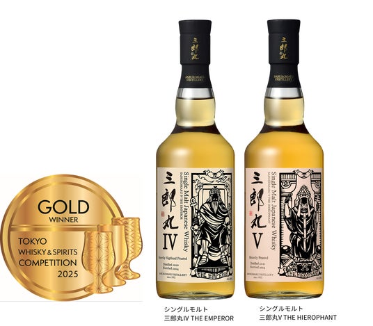 若鶴酒造株式会社(本社:富山県砺波市三郎丸 代表者:稲垣貴彦)は、世界のウイスキーおよびスピリッツを審査する日本唯一の品評会「TWSC 東京ウイスキー&スピリッツコンペティション2025(運営:ウイスキー文化研究所)」において、シングルモルトウイスキー「三郎丸IV THE EMPEROR」と「三郎丸V THE HIEROPHANT」の2品が世界各国から出品された延べ348アイテムの中から金賞を受賞しました。