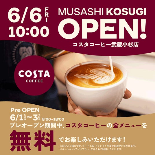 双日ロイヤルカフェ株式会社(本社:東京都渋谷区、代表取締役社長:西尾真理子)が展開する「コスタコーヒー※」は、国内11店舗目となる「コスタコーヒー 武蔵小杉店」を、2025年6月6日(金)にオープンします!
