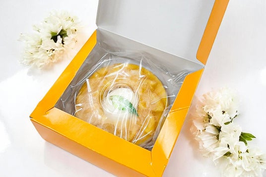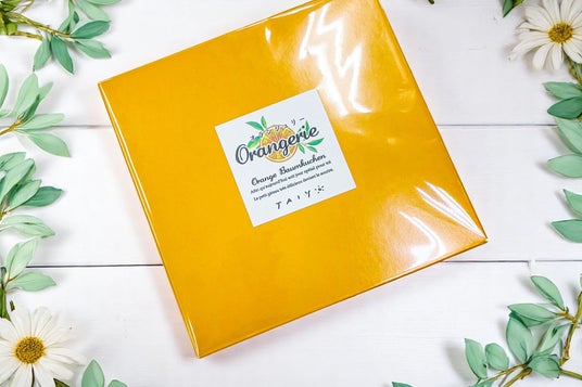オレンジ色の化粧箱に包まれた、化粧箱までジューシーなバウムクーヘン。