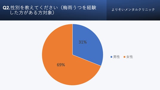 その結果、約7割の方が女性で、女性の方が梅雨うつを経験しやすいことが分かりました。