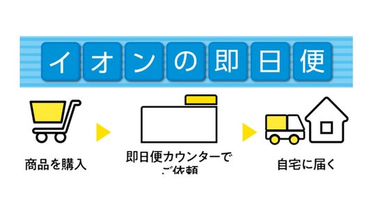 イオン店頭でご購入いただいた商品を、買ったその日にご自宅までお届けするサービスをご利用いただけます。(承り時間により翌日配送になる場合があります)