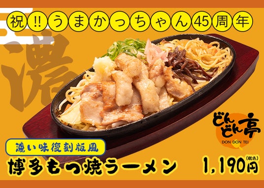 「どんどん亭」は、同じく九州発祥の「うまかっちゃん」の誕生45周年記念イヤーに参画し、「どんどん亭でしか味わえないうまかっちゃんメニュー」を開発いたしました 。