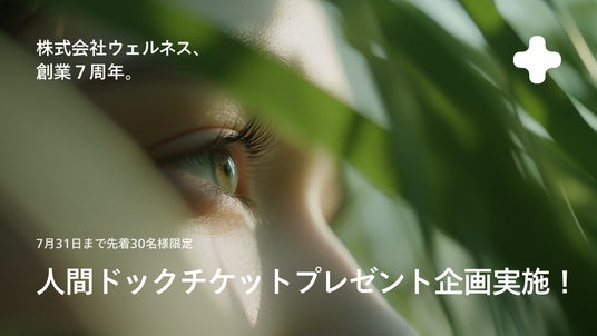 創業7周年を記念し、日頃の感謝を込めて、期間限定の特別キャンペーンを実施いたします。いまWellness Membershipにご入会いただくと、ギフト用の「人間ドックチケット」をプレゼントします。ぜひこの機会に、自分自身の健康と向き合い、ともに健康で豊かな人生を歩みたい大切な人への贈り物としてご活用ください。