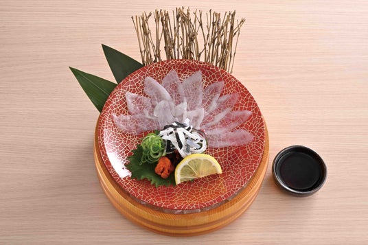 “国産真ふぐ”を薄造りにした、繊細で上品な味わいの「てっさ」。