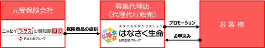 はなさく生命とニッセイプラスは、日本生命グループの会社です。このたび、両社は代理店委託契約を締結し、はなさく生命の公式ホームページを通じてニッセイプラスの商品を販売します。この取組は、両社間での初の協業取組となります。