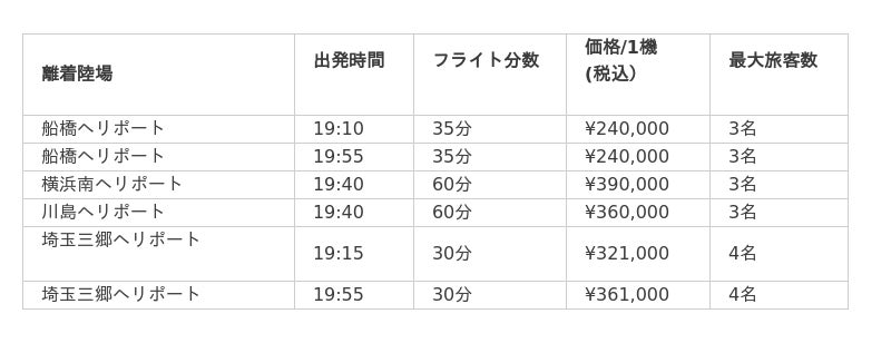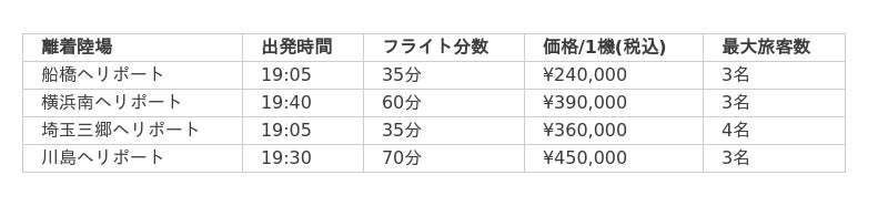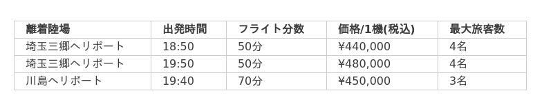 首都圏4カ所のヘリポートから出発、1機24万円~販売開始