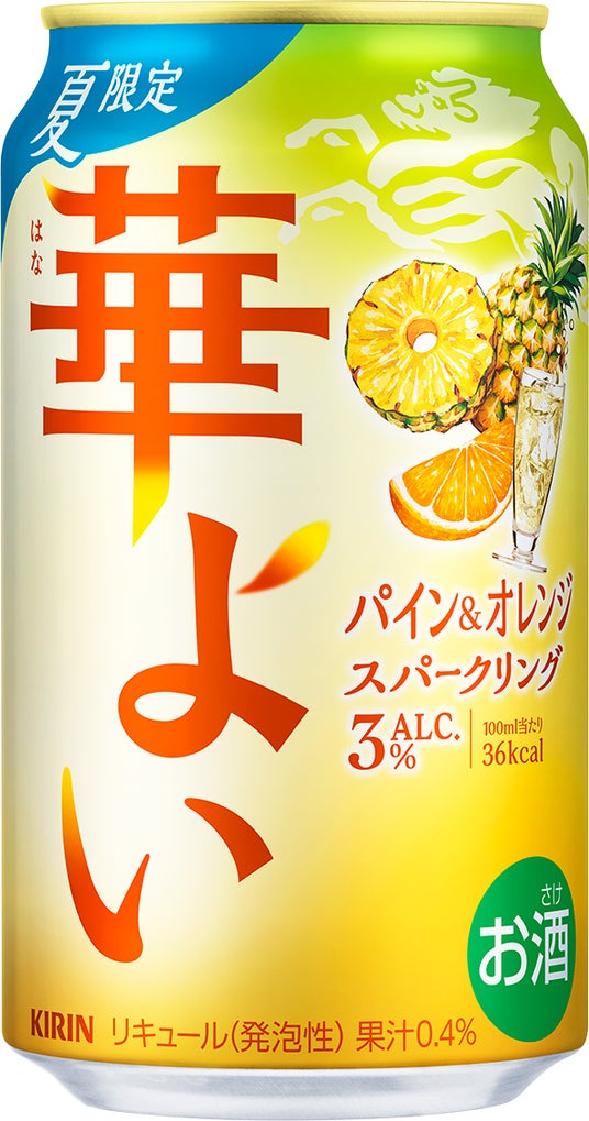 キリンビール株式会社(社長 堀口英樹)は、こころ華やぐ解放感を楽しめるALC.3%の低アルコールRTD※1ブランド「キリン 華よい」から、「キリン 華よい パイン&オレンジスパークリング(期間限定)」(350ml缶)を7月8日(火)より全国発売します。