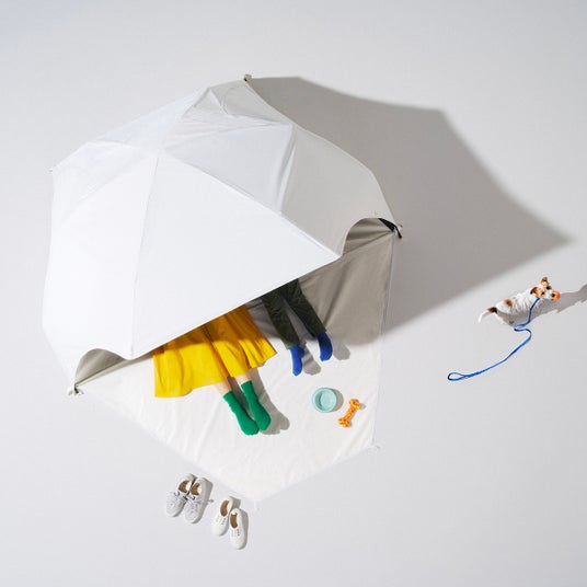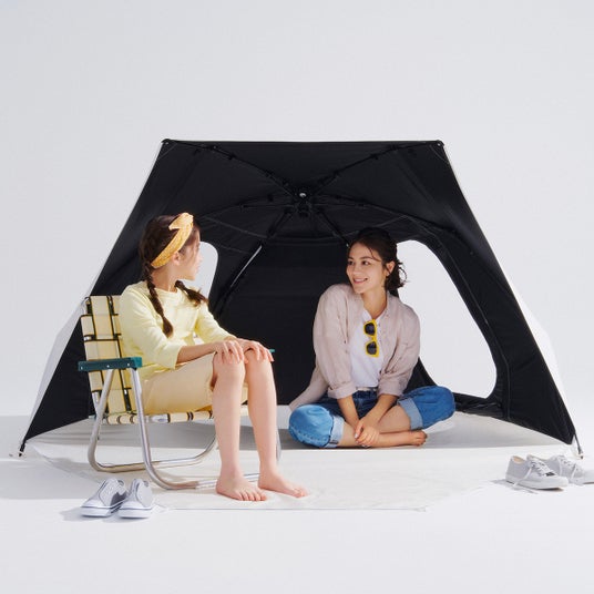 日差しの中で輝く純白の高級感を実現。光と影のコントラストが、日陰の特等席を創り出します。傘のように5秒で開けて、-10℃の体感温度を実現したサンシェード