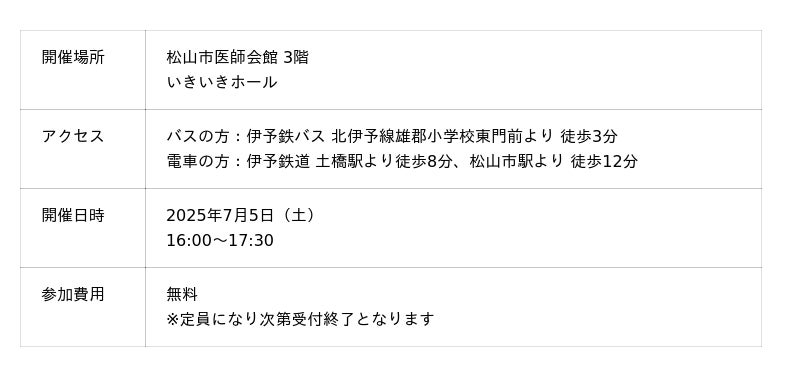 第39回いきいき健康塾 – 松山市医師会主催の市民公開講座を2025年7月5日(土)に開催