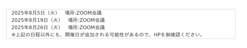 ■開催地 ⇒ オンラインですので全国から参加可能。