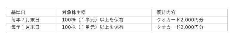 対象株主様に対して、各2,000円分(年間合計4,000円分)のクオカードを贈呈いたします。