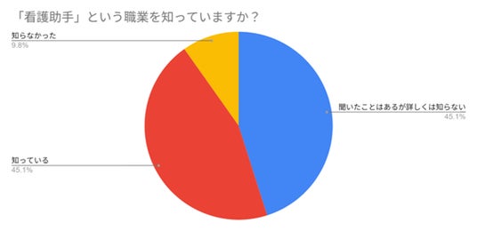 看護助手という職業を「聞いたことはあるが詳しくは知らない」人が全体の45.1%