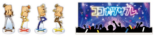 「ココナッツサブレ」のキャラクターをデザインしたアクリルスタンド (4体) と、アクリルスタンドを立てるライブ会場風のステージをセットにしました。