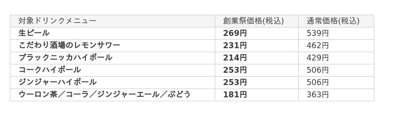 「創業祭ドリンク半額キャンペーン」概要
