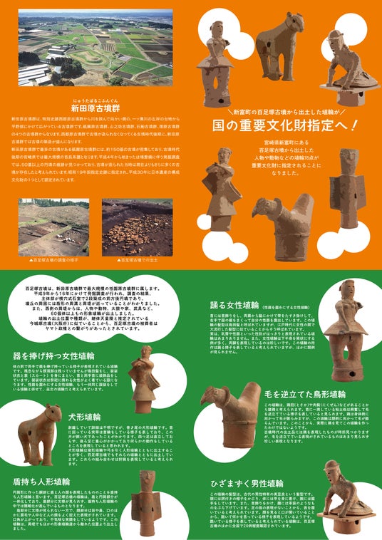 なお、令和7年3月21日重要文化財として答申を受けた「宮崎県百足塚古墳出土埴輪」について、主たる埴輪の展示を開始します。