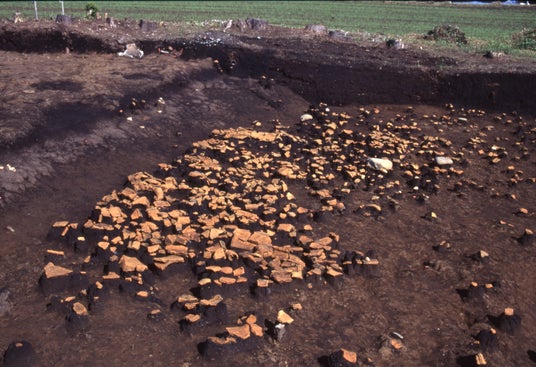 新富町は、同古墳群の史跡整備事業を進めており、その端緒として平成9年度から同16年度までに百足塚古墳の確認調査を行いました。その結果、古墳の規模や形状、埋葬主体の位置などに加え、墳丘や周溝から多量の埴輪が発見されるなど、当時の古墳の様子が明らかになってきています。
