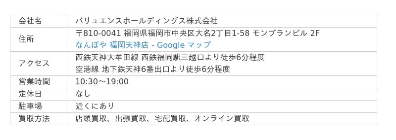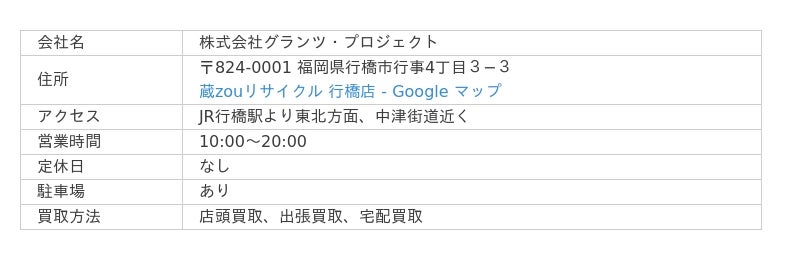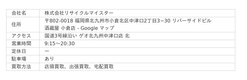 なお、ビールに関しては「24本入りで製造年月が先月および今月のもの」と期限が限られているので注意しましょう。店舗は福岡県行橋市にあり、大量買取や法人向けの大口買取、遺品整理にも対応。また、買取以外にも「質預かり」や「不用品回収」も行っています。