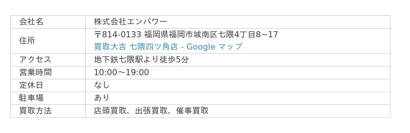 こちらの店舗は福岡大学近くの七隈駅から徒歩圏内の大通り沿いにあり、アクセスしやすさが魅力。店舗前には駐車場もあるため、持ち込み買取にもおすすめです。
