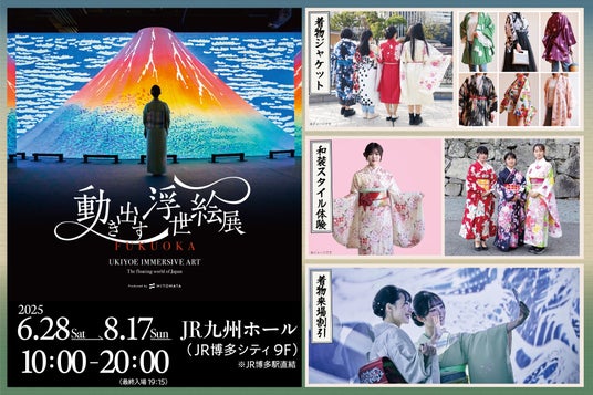 この度、『動き出す浮世絵展 FUKUOKA』にて、福岡の着物レンタル「まゆの会」福岡城「まゆの館」による協力のもと、2種類の着物体験企画「気軽に羽織れる着物ジャケット」と「和装スタイル体験」を期間限定で実施することが決定しました。