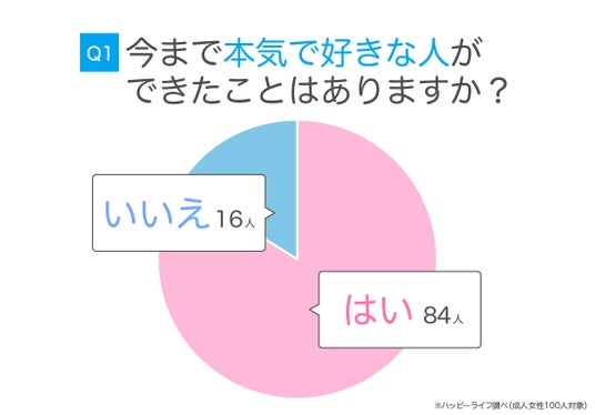 ハッピーライフでは、成人女性100人に「今まで本気で好きな人ができたことはありますか?」というアンケートを取りました。