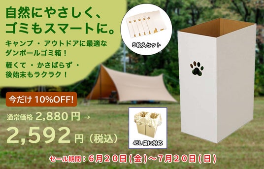 株式会社タチバナ産業(埼玉県春日部市、代表取締役:野原将彦)は自社サイト「だんぼーる本舗」で、「ダンボールゴミ箱」(5枚セット)の10%OFFセールを開催いたします。