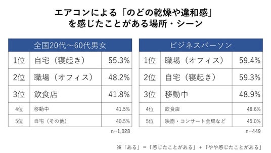 株式会社龍角散(東京都千代田区、代表取締役社長 藤井隆太、以下、龍角散)は、全国の20~60代の男女1,028名を対象に「エアコンによる“のどの違和感”実態調査」を実施いたしました。