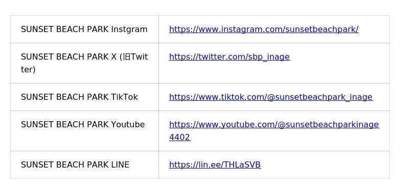 *「SUNSET BEACH PARK INAGE」とは、稲⽑海浜公園内にて、株式会社ワールドパークがリニューアルを推進する区域やその施設を総称する愛称です。