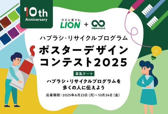 ライオン株式会社(代表取締役兼社長執行役員:竹森 征之)は、2015年からテラサイクルジャパン合同会社(代表/アジア統括責任者:馬場 恒行、以下、テラサイクル社)と提携し、身近なSDGs活動として、使用済みハブラシを回収・リサイクルする「ハブラシ・リサイクルプログラム」を展開しています。より多くの方に本プログラムへの関心を持っていただくため、未就学、学生、一般部門と幅広い年代を対象に、ハブラシリサイクルを題材としたポスターデザインコンテストを開催します。8回目の開催となる今年も昨年に引き続き、「ハブラシ・リサイクルプログラムを多くの人に伝えよう」をテーマとして作品を募集します。