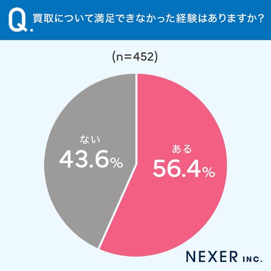 56.4%と半数以上の方が、買取について満足できなかった経験が「ある」と回答しています。