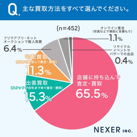 65.5%と半数以上の方が「店舗に持ち込んで査定・買取」と回答しています。