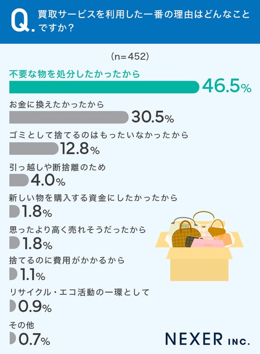 ■買取サービスを利用した一番の理由、半数近くが「不要な物を処分したかったから」