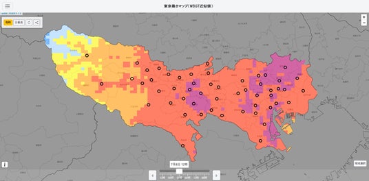 このシステムにより、1時間ごとの暑さ指数や1週間先までの暑さ指数の最高値を、地図上で確認できるようになります。