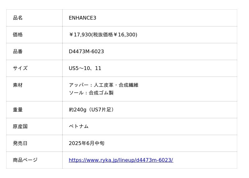 ゼット株式会社(本社/大阪市天王寺区、代表取締役社長/渡辺裕之)が取り扱う『ryka(ライカ)』ブランドより、ダンスエクササイズモデルで人気のローカットモデル【NO LIMIT】(ノーリミット)から可愛らしくてコーディネートしやすい新色「ホワイト×ゴールド」と、ミドルカットモデル【ENHANCE3】(エンハンス3)からかっこよく履きこなせる新色「グレー×シルバー」を、それぞれ2025年6月中旬に発売しました。