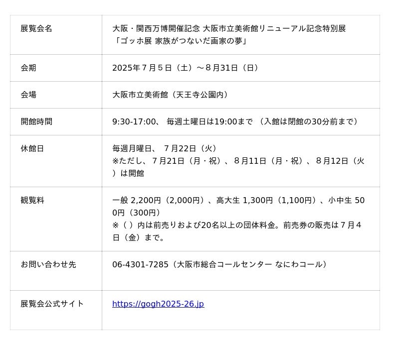 2025年7月5日(土)より大阪市立美術館で開催する「ゴッホ展 家族がつないだ画家の夢」では、この度、コラボレーショングッズ販売の詳細が決定いたしました。