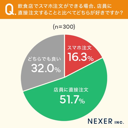 51.7%と半数以上の方が、「店員に直接注文する方が好き」と回答しています。
