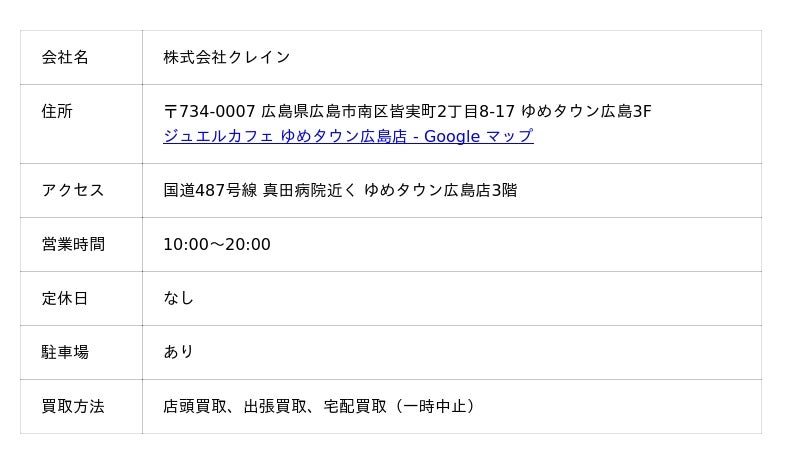 おたからやは、全国1,400店舗以上展開する国内でも屈指の大手買取店です。Google口コミで星4.8、広島本店は星5、口コミ数148と非常に高い評価を得ています。
