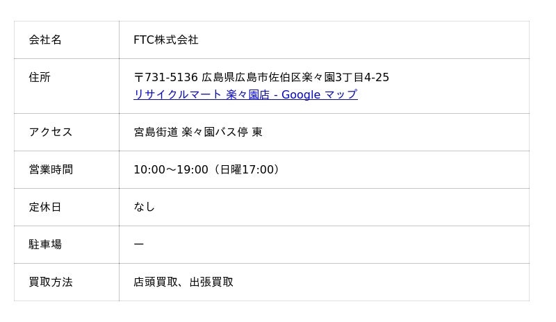 なお、店頭買取は完全予約制なので、来店前には必ずコンタクトを取っておきましょう。店舗には無料駐車場(1台)も完備しています。