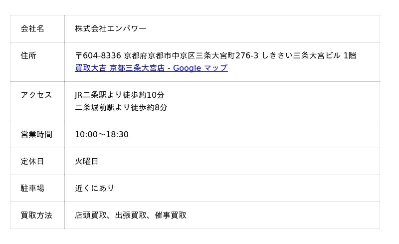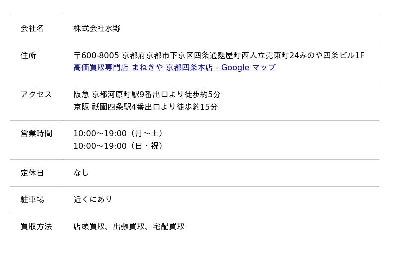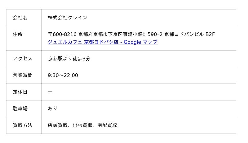 当店は京都駅からすぐという好立地で、周囲には100円ショップや手芸店なども入っているので、査定を待つ間にショッピングを楽しむのもおすすめです。