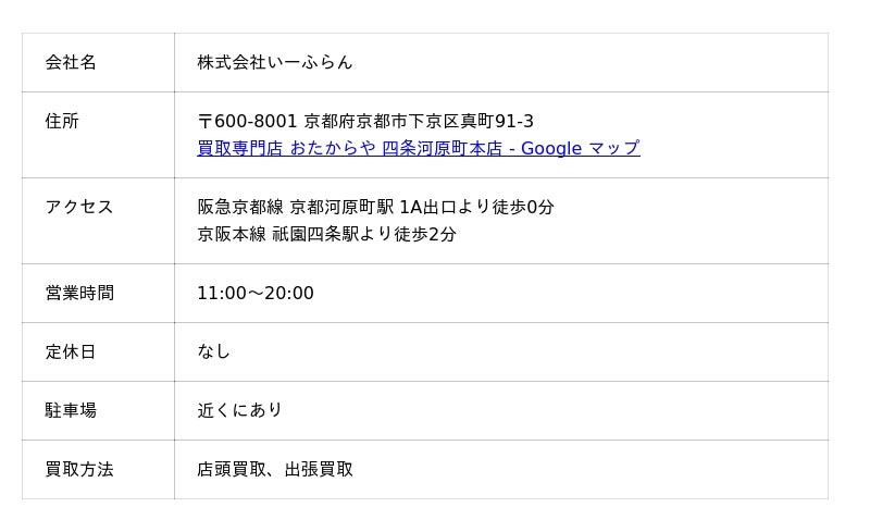 こちらの店舗は、阪急京都線「京都河原町駅」からアクセス抜群の好立地。来店予約も受け付けているため、待ち時間を気にされる方にもおすすめです。
