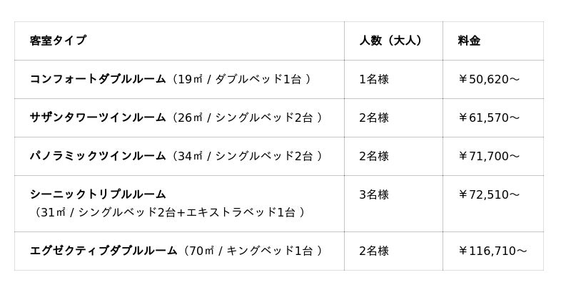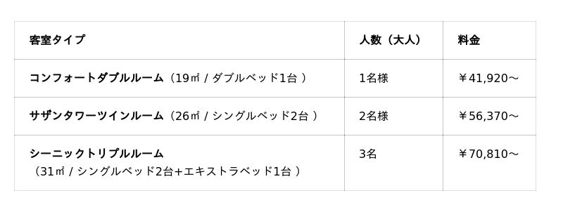 ※ 料金には、朝食、消費税・サービス料が含まれます。規定の宿泊税はチェックイン時にお支払いいただきます。