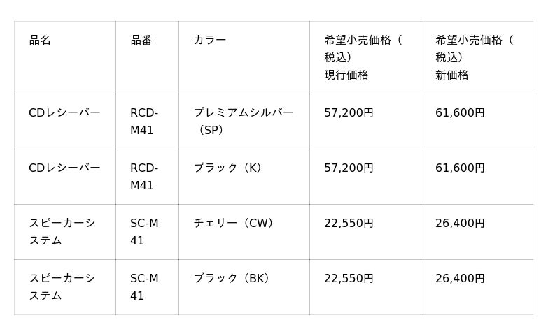 デノンは、2025年8月1日(金)にCDレシーバー「RCD-M41」およびスピーカー「SC-M41」の価格改定を実施することをお知らせいたします。