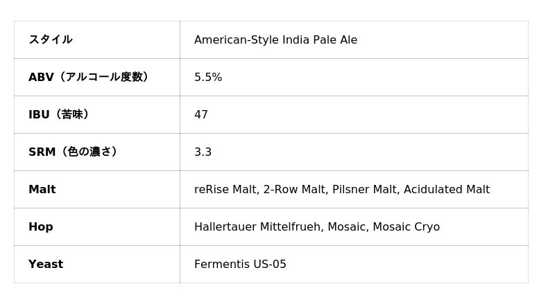 淡色で雑味の少ない「reRise麦」の性質を活かし、暑い季節でも飲み疲れしないドライでキレのある味わいに仕上げつつも、IPAならではのフレッシュさとジューシーさを表現し、しっかりとした飲みごたえも兼ね備えています。