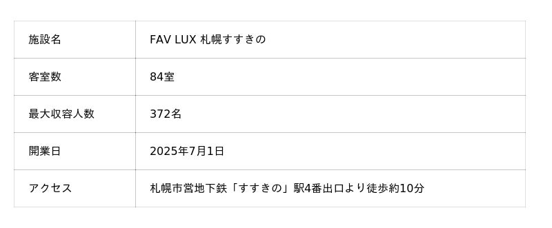■ 施設サイト:https://fav-hotels.com/hotels/lux/sapporosusukino/