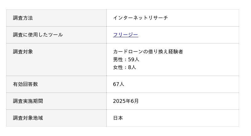 ココモーラでは、ユーザーの生の声を調査するため「カードローンの借り換えに関するアンケート調査」を行いました。アンケート調査の概要は以下の通りです。